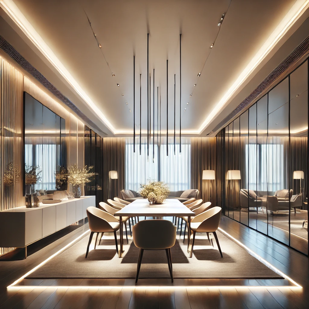 반사광은 조명이 벽, 천장, 거울 등의 표면에 반사되면서 빛이 확산되는 효과를 이용하는 방법입니다. 이를 잘 활용하면 공간이 더욱 깊고 넓어 보이는 착시 효과를 얻을 수 있습니다.